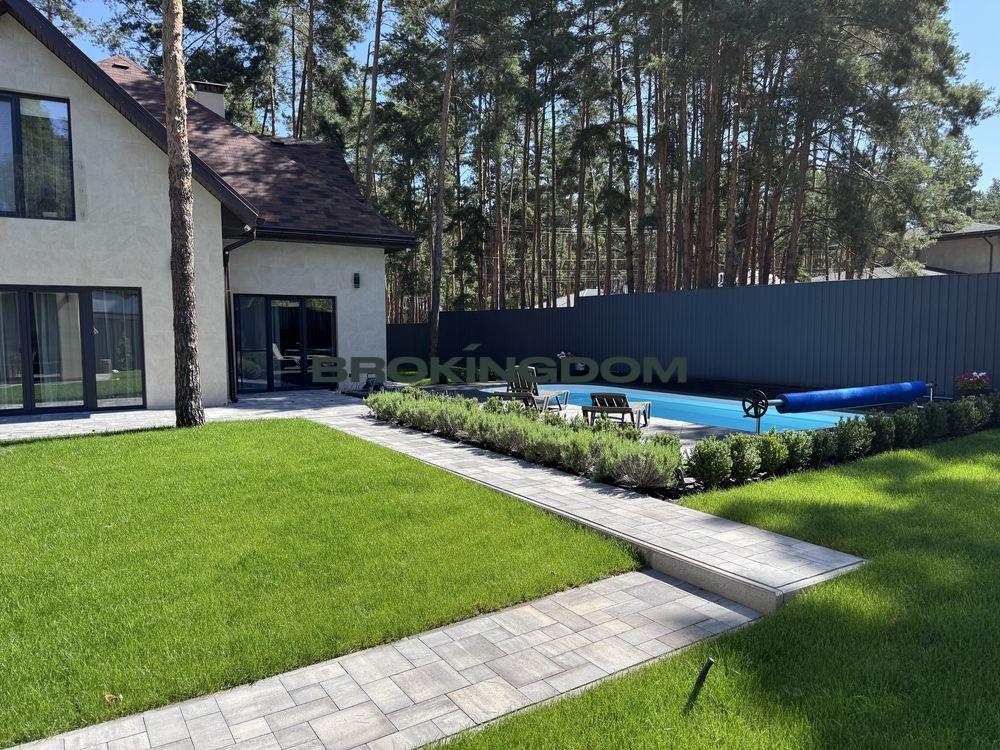 Продається розкішний будинок у Лісовій Бучі. Ділянка 10сот, площа 200м.кв. У домі 5 спалень, велика вітальня з каміном, два санвузли. Оздоблювальні матеріали, меблі, побутова техніка найвищої якості! На території знаходиться басейн 8,5*4м з підігрівом, зроблене озеленення території з автоматичним поливом, великий навіс для трьох авто з можливістю заряджання електромобілів! Поруч знаходиться гостьовий будиночок 90м.кв з банею, мангальною, зоною відпочинку, тех.приміщенням! По всій території встановлені камери спостереження, охорона, сигналізація!
