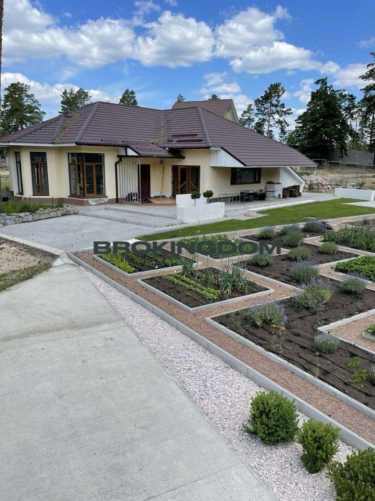 Одноповерховий будинок з терасою та мансардою.Загальна площа 131,1м2 93м2 допоміжна будівля з гаражем, майстернею, місцем для зберігання інвентарю та генератором. Рік робудови 2020 року.